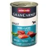 La comida húmeda para perros Almo Nature Daily está disponible en diferentes variedades deliciosas, cada una de ellas está elaborada con ingredientes animales como ternera, buey, pavo o pollo. Esta deliciosa comida húmeda proporciona a tu perro una gama de vitaminas y oligoelementos como la vitamina E, la vitamina B1 y el manganeso. La comida húmeda de Almo Nature Daily no contiene gluten, por lo que también es adecuada para perros con intolerancia al gluten. También se han evitado sistemáticamente los colorantes y conservantes químicos. Además, viene envasa en una práctica tarrina de aluminio reciclable.