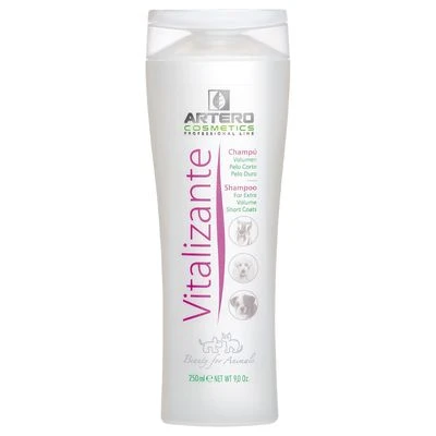 Este champú vitalizante con tensioactivos vegetales está formulado especialmente para perros con pelo fuerte y voluminoso, como caniche, bobtail, schnauzer o terrier. Limpia suavemente el pelo y le da fuerza y volumen. El champú vitalizante Artero contiene sustancias como camomila, castaño de Indias y una combinación de vitaminas, beneficiosas para la regeneración y el fortalecimiento del pelaje. Contiene también tensioactivos vegetales para potenciar la elasticidad y el brillo .