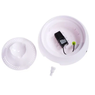 Fuente para gatos especialmente silenciosa que anima a beber, incluye 4 boquillas intercambiables y filtro mecánico que protege la bomba. Bajo consumo energético y facilidad de limpieza. Color: blanco