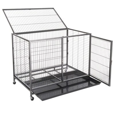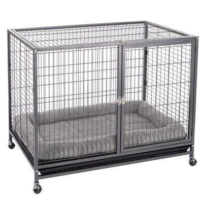 Amplia jaula móvil ideal para cachorros traviesos, o perros en celo o en cuarentena. Ideal también para llevar a tu perro a exposiciones. Las ruedas son desmontables y la bandeja inferior, extraíble.