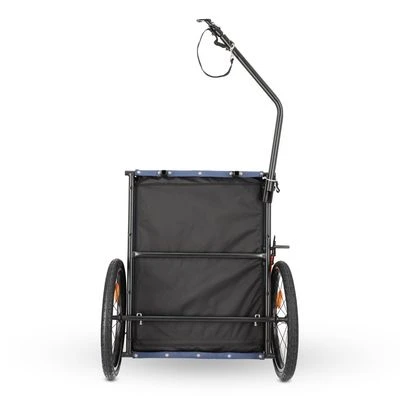 Importante: viajar en un remolque es una experiencia nueva y desconocida para el perro. Por lo tanto, es esencial que se aclimate al remolque y al paseo: solo así podrá tener una experiencia agradable y tranquila. El perro nunca debe ser transportado en un remolque de bicicleta sin ir asegurado. Por favor, utiliza una correa corta en el remolque para evitar que el perro se baje involuntariamente durante la conducción. La rueda trasera de la bicicleta con remolque debe tener neumáticos de 26″ a 29″. Durante el uso como remolque para bicicletas, hay que retirar la rueda delantera. Velocidad máxima de 25 km/h (como remolque) o velocidad de marcha (como jogger).