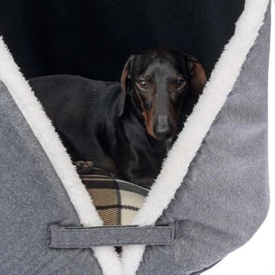 TIAKI Gleniff es una cama para gatos y perros de tamaño pequeño y mediano, se caracteriza por sus bordes extra altos que garantizan que tu peludo se sienta seguro en su interior. El cojín extraíble con un bonito aspecto de cuadros se puede lavar fácilmente en la lavadora y, junto con el borde afelpado, garantiza un refugio acogedor. El cierre de velcro fácil de usar de la cueva TIAKI Gleniff mantiene la mantiene unida y ayuda a colocar el cojín en su sitio. Para evitar que tu mascota se haga daño con la cremallera, también está equipada con un velcro protector.